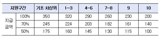 ݾ ҵ(ʡ, 1~3, 4~6, 7~8, 9, 10) л ֱⰣ(7 ̻ 100%, 3 ̻ 5 ̸ 70%, 3 ̸ 50%) 200 ҵ汸 30 ϸ ִ 350 Ѵ.