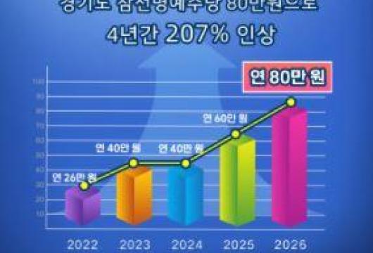 °æ±âµµ, ¿ÃÇØ ÂüÀü¸í¿¹¼ö´ç ¿¬ 80¸¸ ¿øÀ¸·Î Àλó. 4³â µ¿¾È 207% ´Ã¾î